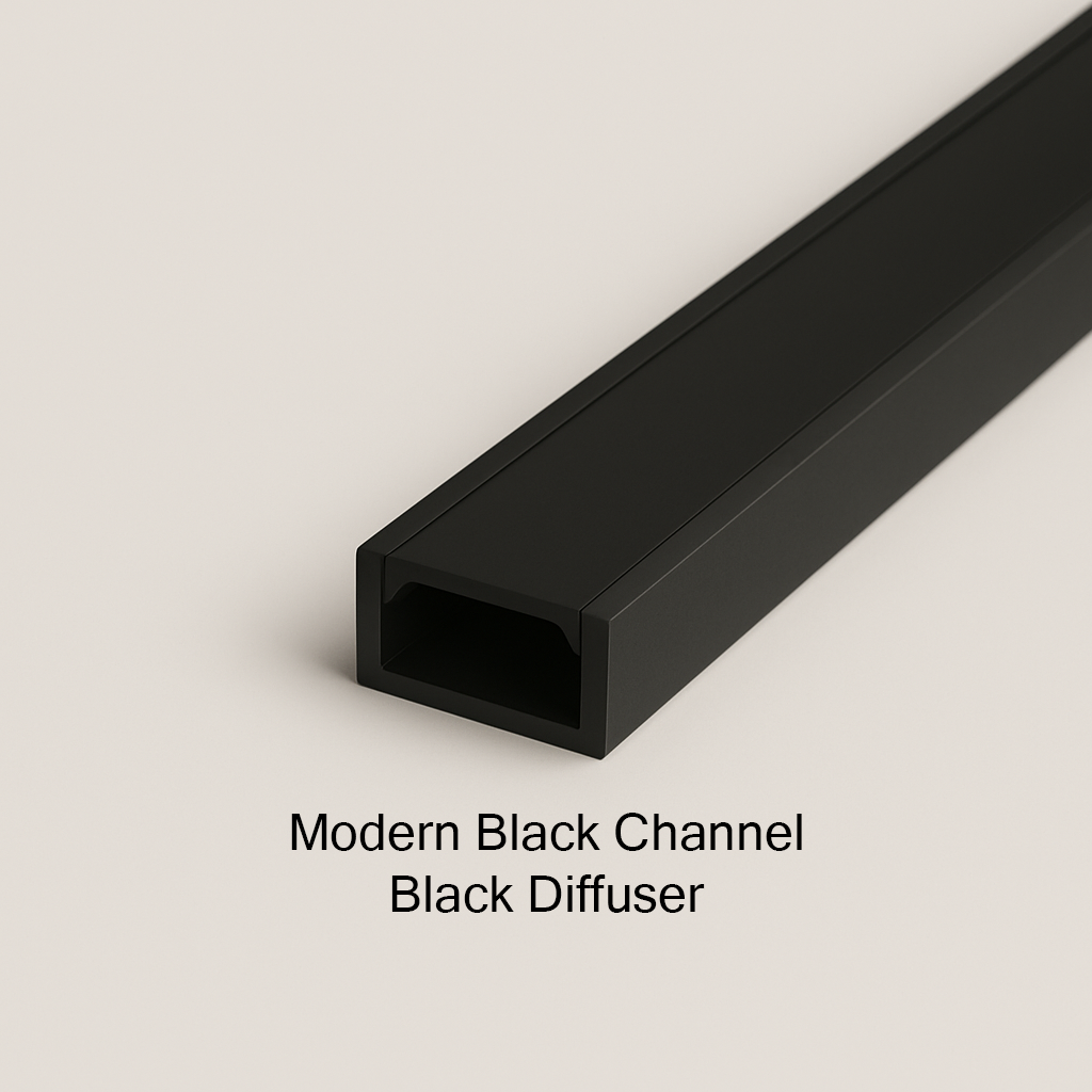 Choose between sleek black or modern silver aluminium channels — both include a premium diffuser and come with pre-applied double-sided adhesive for quick, hassle-free installation.