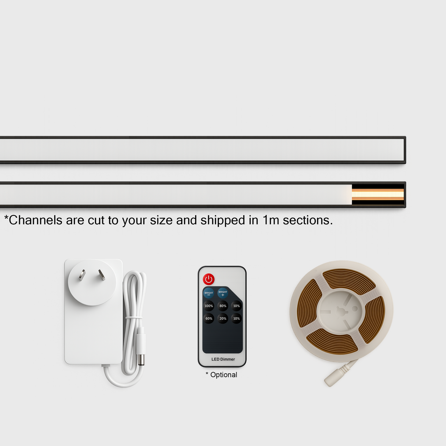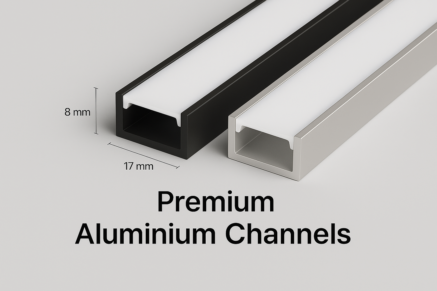 Choose between sleek black or modern silver aluminium channels — both include a premium diffuser and come with pre-applied double-sided adhesive for quick, hassle-free installation.