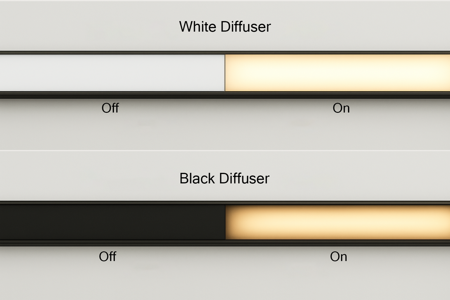 White Diffuser — Maximises brightness with a soft, even glow. Ideal for kitchens, task areas, or brighter interiors where maximum light output is desired.